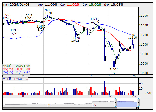 まずは52000円処での底堅さを見極めつつ、同水準を割り込んできたとしてもボリンジャーバンドの+2σが位置する51860円辺りが支持線として意識されやすいだろう。一方で、52000円を上回っての底堅さがみられる局面においては、半導体・AI関連株や防衛関連株へのリバウンド狙いに向かわせそうである。特に米国では「CES 2026」が開幕したことで、アマゾン・ドット・コムやパランティア・テクノロジーズ、インテル、サンディスク、マイクロンテクノロジーなどが買われており、フィラデルフィア半導体(SOX)指数は2%を超える上昇だったことで、半導体・AI関連株への物色意欲は根強いだろう。