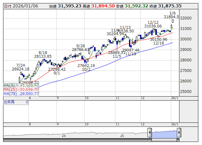 2026年01月07日08時46分 【市況】JPX日経400先物:7日寄り付き=425ポイント安、3万1600ポイント JPX日経400 <日足> 「株探」多機能チャートより 7日8時45分、JPX日経インデックス400先物期近2026年3月限は前日清算値比425ポイント安の3万1600ポイントで寄り付いた。前日のJPX日経インデックス400の現物終値3万1875.35ポイントに対しては275.35ポイント安。 株探ニュース