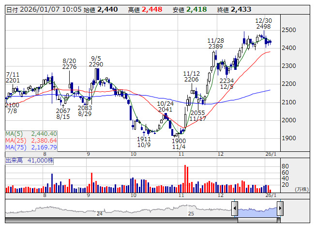 【材料】Uアローズが続伸、12月既存店売上高は3カ月連続前年上回る