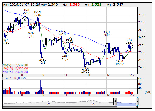 足元の業績では、2026年1月期第3四半期累計の売上高は184,950百万円(前年同期比2.7%増)、営業利益は5,218百万円(同18.3%減)で着地した。消費者の節約志向による販売数量の減少や原価高騰による粗利減により国内飲料事業・食品事業は苦戦した一方、海外飲料事業は好調だった。トルコ飲料事業では、2022年度以降のハイパーインフレ環境下で断続的な価格改定を行いながらも、販売ボリュームは2022年度同期比で1.3倍以上に拡大。海外飲料事業は第3四半期として過去最高益を更新した。好調な海外飲料事業で国内飲料事業と食品事業の減益を一部吸収する形となった。通期計画では、売上高は243,400百万円(前年同期比2.6%増)、営業利益は1,800百万円(同62.4%減)を見込んでいる。