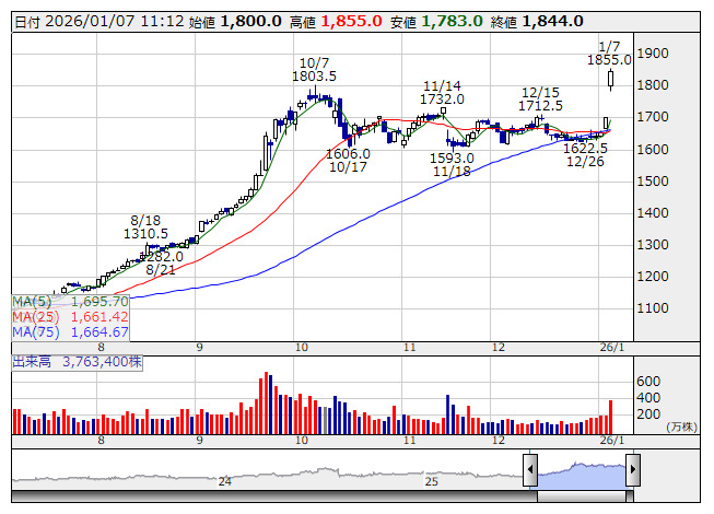 高島屋 <日足> 「株探」多機能チャートより