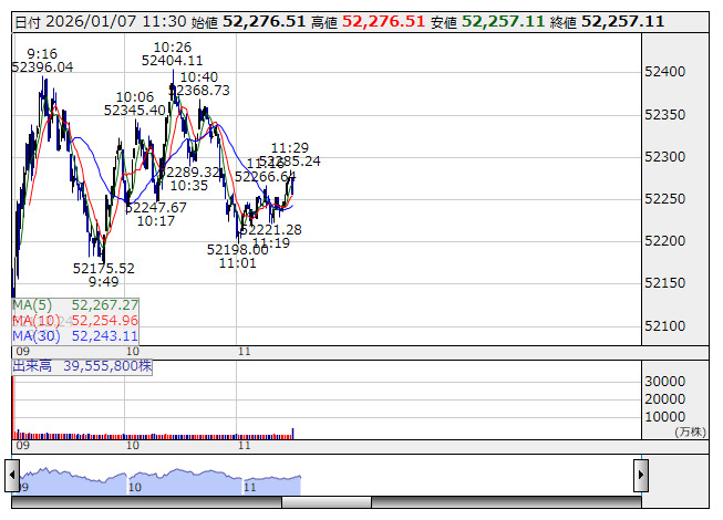 【市況】日経225先物:7日正午=250円安、5万2260円