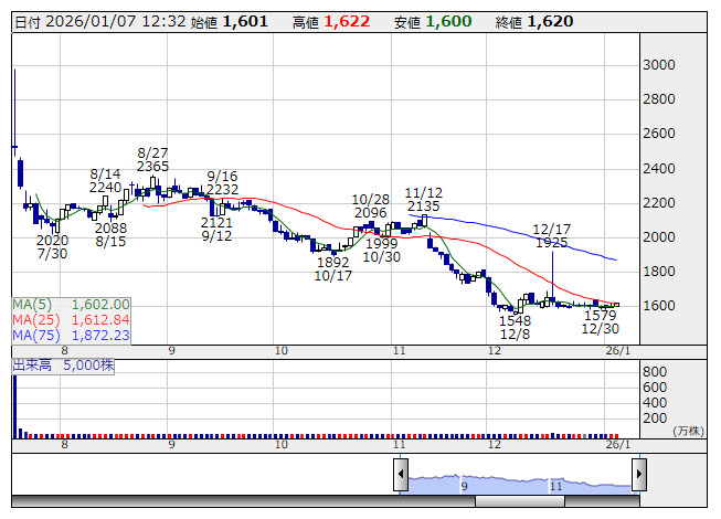 2026年01月07日12時39分 【材料】みのやが後場も強含み、12月既存店売上高が3カ月連続前年上回る みのや <日足> 「株探」多機能チャートより みのや<386A>が後場も強含みで推移している。正午ごろに発表した12月度の月次売上高で、「おかしのまちおか」既存店売上高が前年同月比1.3%増となり、3カ月連続で前年実績を上回ったことが好感されている。客数は同1.6%減となったものの、客単価が同3.0%増と上昇したことが牽引した。なお、全店売上高は同6.7%増だった。 出所:MINKABU PRESS