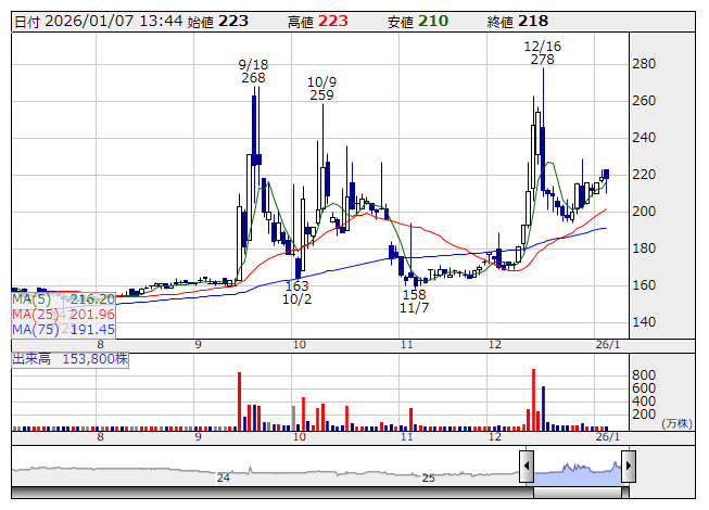 トップカルチ <日足> 「株探」多機能チャートより書籍で大型店が牽引役となったほか、EC販売も堅調に推移。また、特撰雑貨文具では、全国のお取り寄せグルメを中心に食品が前年を大きく上回ったほか、服飾や文具、コスメも好調だった。更に、子会社のゲーム・トレカ事業、Cafe事業、その他DAISO、ガシャポン、買取大吉も伸長したことが既存店売上高の増加につながった。なお、全店売上高は同横ばいだった。