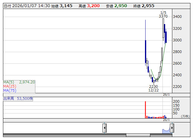 フィットクル <日足> 「株探」多機能チャートより■財務省 : 1月7日受付