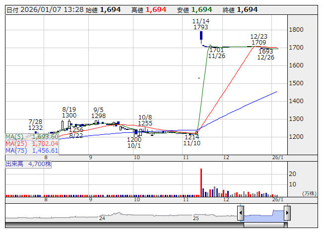 杉田エース <日足> 「株探」多機能チャートより■財務省 : 1月7日受付