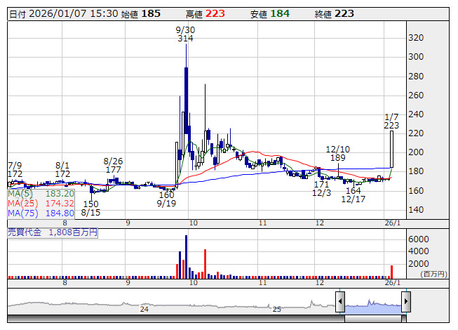 【材料】本日のランキング【売買代金 増加率】 (1月7日)