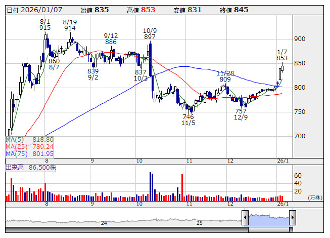 レアアース関連の一角として物色向かう。