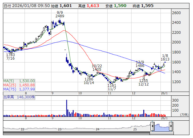 2026年01月08日09時54分 【材料】アシロが5連騰、アセット・バリューによる保有割合が18.97%に上昇 アシロ <日足> 「株探」多機能チャートより アシロ<7378>が5連騰。7日の取引終了後に関東財務局に提出された変更報告書で、英ロンドンに拠点を置く投資顧問会社アセット・バリュー・インベスターズによる株式保有割合が17.08%から18.97%へ一段と上昇したことが明らかになり、思惑視した買いが続いている。保有目的は「純投資及び重要提案行為などを行うこと」。報告義務発生日は12月24日となっている。 出所:MINKABU PRESS