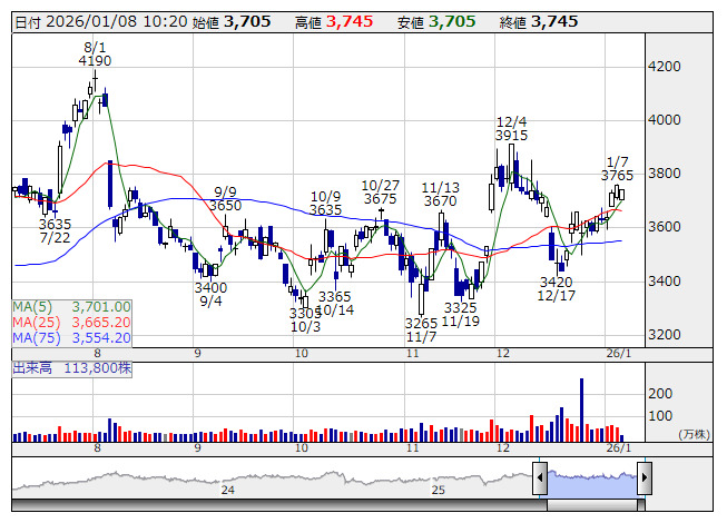 オークマ <日足> 「株探」多機能チャートより■財務省 : 1月8日受付
