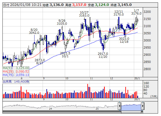 スタンレー <日足> 「株探」多機能チャートより■財務省 : 1月8日受付