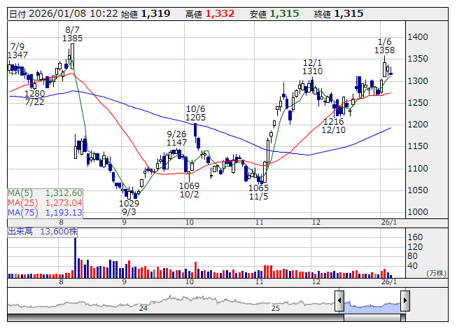 チャームケア <日足> 「株探」多機能チャートより■財務省 : 1月8日受付