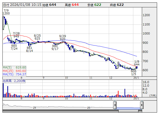 グロービー <日足> 「株探」多機能チャートより■財務省 : 1月8日受付