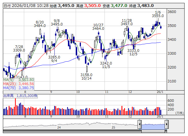 積水ハウス <日足> 「株探」多機能チャートより■財務省 : 1月8日受付