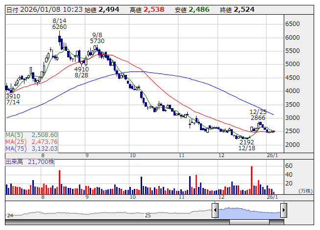 ユトリ <日足> 「株探」多機能チャートより■財務省 : 1月8日受付
