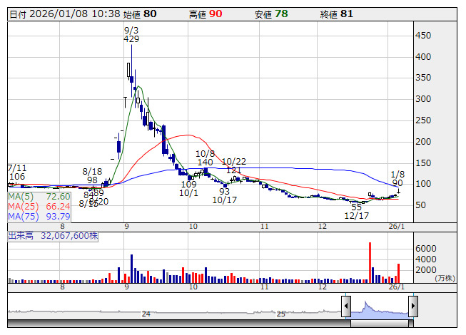 Defコン <日足> 「株探」多機能チャートより