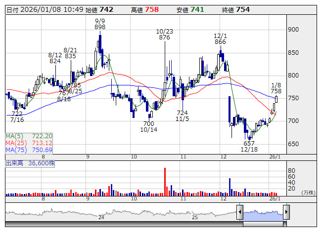 多摩川HD <日足> 「株探」多機能チャートより■財務省 : 1月8日受付