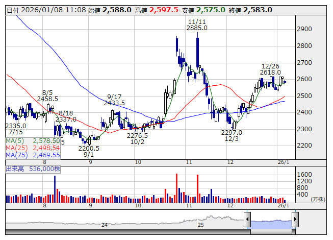 ディーエヌエ <日足> 「株探」多機能チャートより■財務省 : 1月8日受付