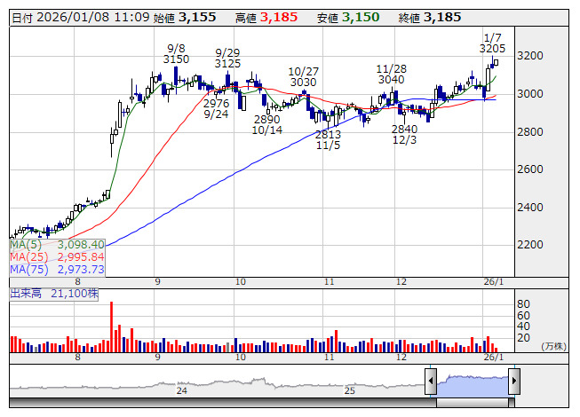 地主 <日足> 「株探」多機能チャートより■財務省 : 1月8日受付