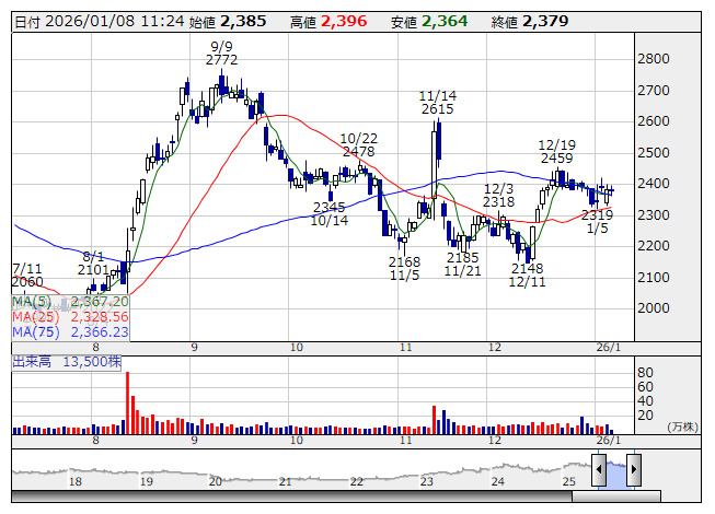 グリーンズ <日足> 「株探」多機能チャートより■財務省 : 1月8日受付