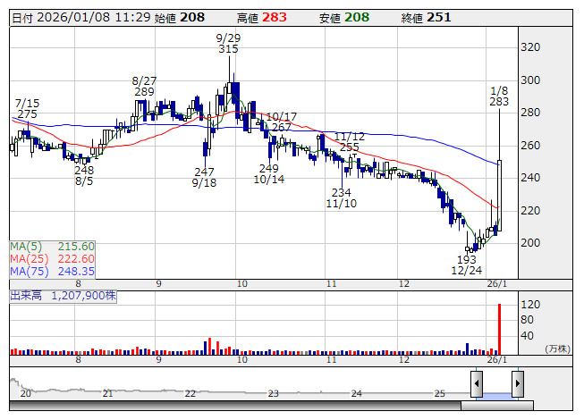 【材料】前場のランキング【寄付からの値上がり率】 (1月8日)