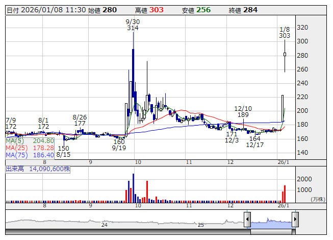 一方、大黒屋ホールディングス<6993>、岡本硝子<7746>、ぷらっとホーム<6836>、メタプラネット<3350>、リベルタ<4935>は値下がり率上位に売られた。