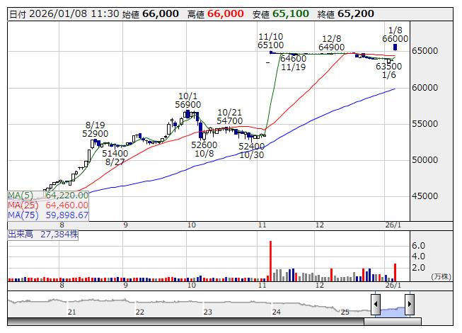 Jインフラ <日足> 「株探」多機能チャートより■財務省 : 1月8日受付