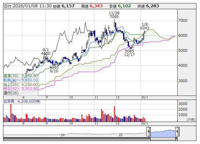 <7003> 三井E&S 6283 +226 ( +3.7%)