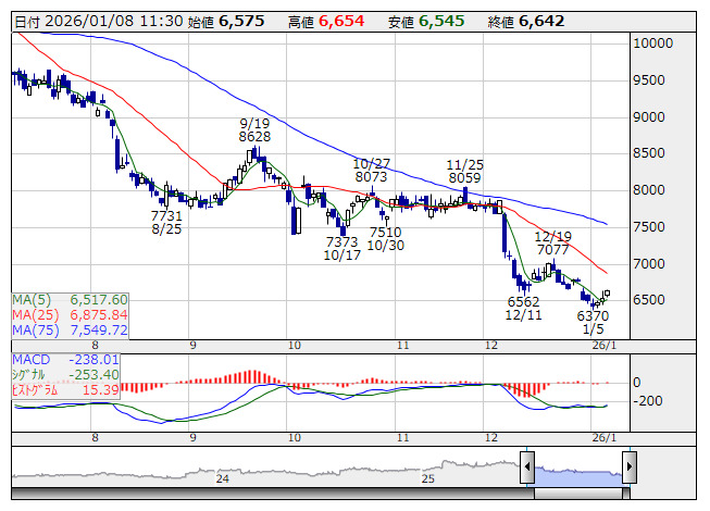 銘柄名 株価 前日比 (比率) MACD