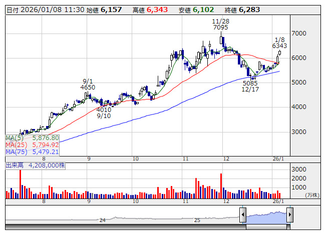 <7003> 三井E&S 6283 +226 ( +3.7%) 5876.8 5794.9