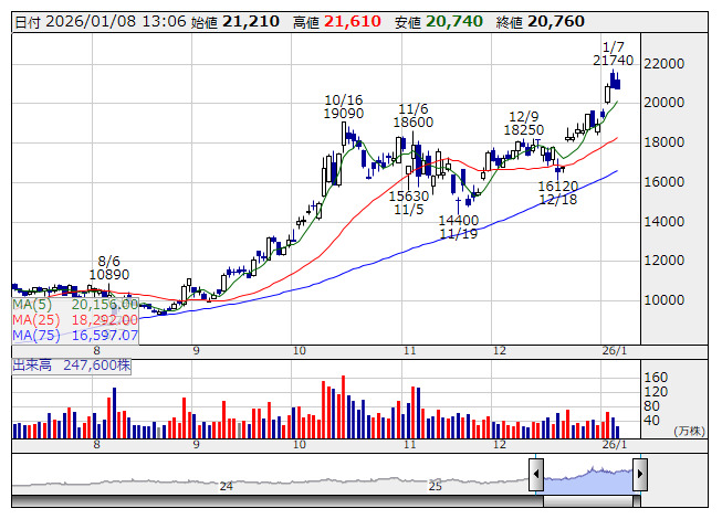 芝浦 <日足> 「株探」多機能チャートより■財務省 : 1月8日受付