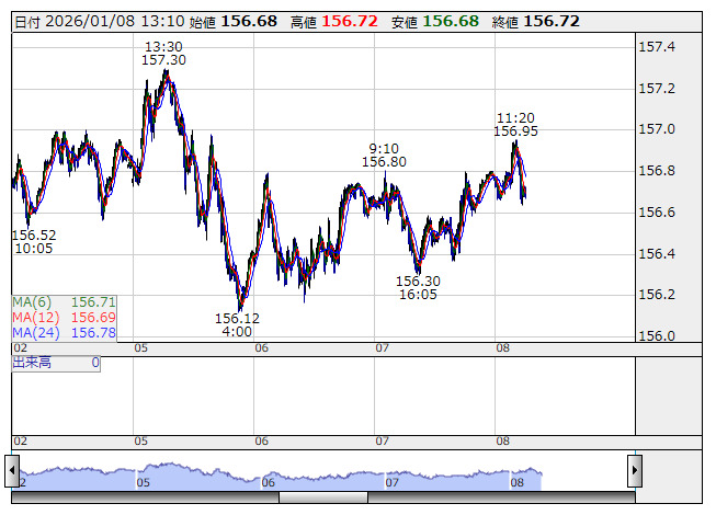 ここまでの取引レンジは、ドル・円は156円66銭から156円95銭、ユ-ロ・円は182円94銭から183円24銭、ユ-ロ・ドルは1.1673ドルから1.1682ドル。