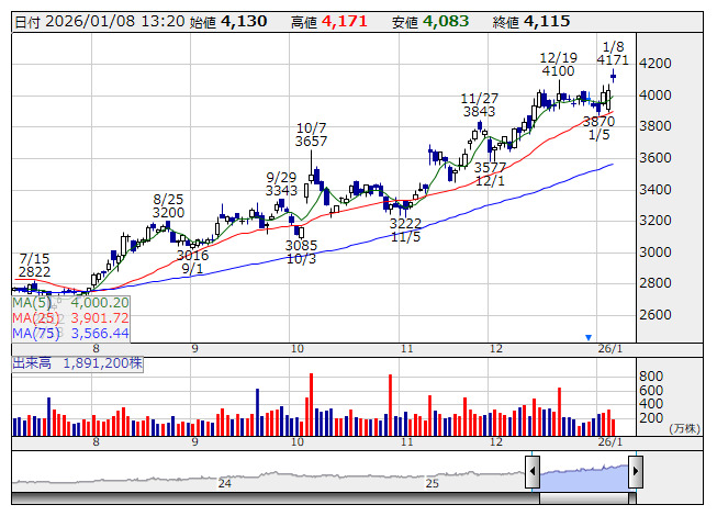 2026年01月08日13時20分 【材料】住友不は上場来高値更新、国内証券が投資評価引き上げ 住友不 <日足> 「株探」多機能チャートより 住友不動産<8830>は3日続伸。上場来高値を更新した。SMBC日興証券が7日付で投資評価を「2(中立)」から「1(アウトパフォーム)」へ、目標株価を3600円から5100円へ引き上げたことが材料視されている。 同証券によると、資産価値を織り込む局面と評価。オフィスなど賃料・資産価値向上を考慮すれば割安感は強いとしたほか、利益成長や政策保有株縮減、株主還元によるROE改善に注目とした。 出所:MINKABU PRESS