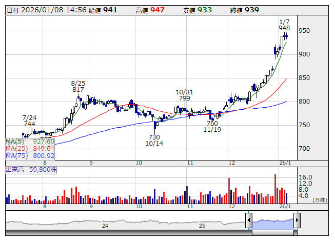 大東銀 <日足> 「株探」多機能チャートより■財務省 : 1月8日受付