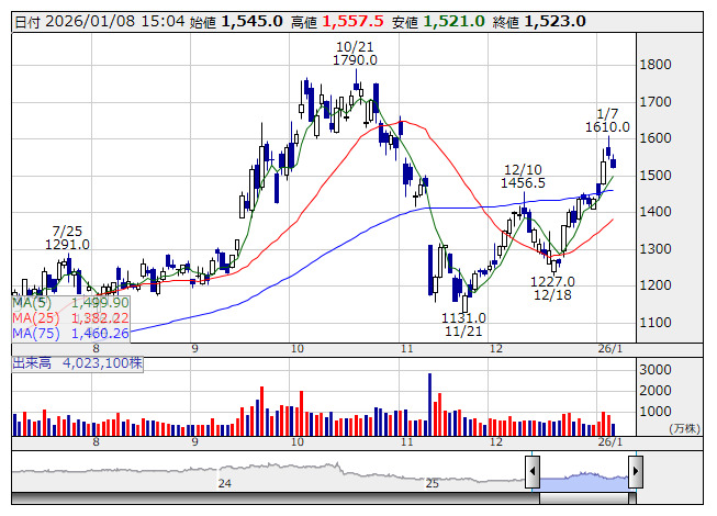 SUMCO <日足> 「株探」多機能チャートより■財務省 : 1月8日受付