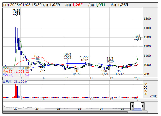 【材料】本日のランキング【寄付からの値上がり率】 (1月8日)