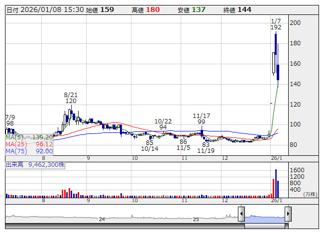 45. <6574> コンヴァノ 東証G -4.4 130 仮想通貨関連