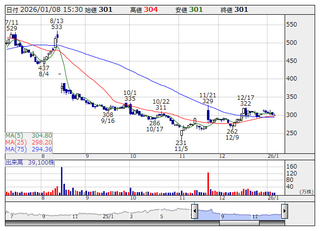 MFS <日足> 「株探」多機能チャートより■財務省 : 1月8日受付