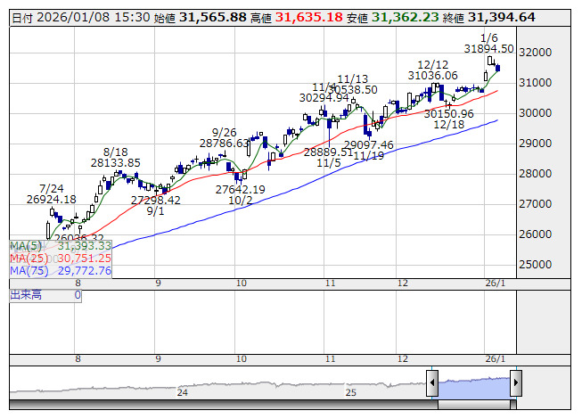 2026年01月08日15時47分 【市況】JPX日経400先物:8日清算値=290ポイント安、3万1365ポイント JPX日経400 <日足> 「株探」多機能チャートより 8日15時45分、JPX日経インデックス400先物期近2026年3月限は前日清算値比290ポイント安の3万1365ポイントで取引を終えた。出来高は2068枚だった。この日のJPX日経インデックス400の現物終値3万1394.64ポイントに対しては29.64ポイント安。 株探ニュース