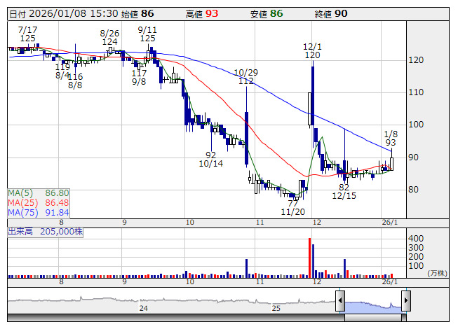 ウイルコHD <日足> 「株探」多機能チャートより■財務省 : 1月8日受付