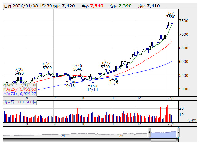 十六FG <日足> 「株探」多機能チャートより■財務省 : 1月8日受付
