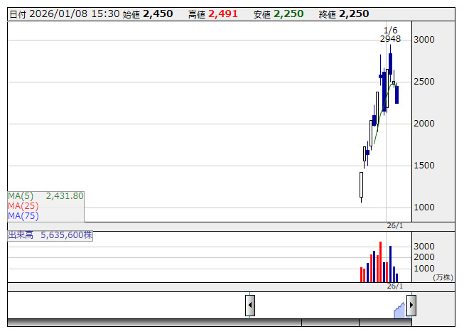 PowerX <日足> 「株探」多機能チャートより■財務省 : 1月8日受付