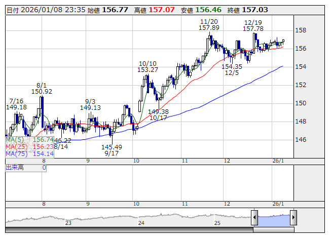 米国債相場は続落。10年債利回りは4.18%まで上昇した。ドル買いが強まり、ドル・円は156円70銭から157円07銭まで上昇。ユーロ・ドルは1.1678ドルから1.1656ドルまで下落、ポンド・ドルは1.3447ドルから1.3416ドルまで下落した。