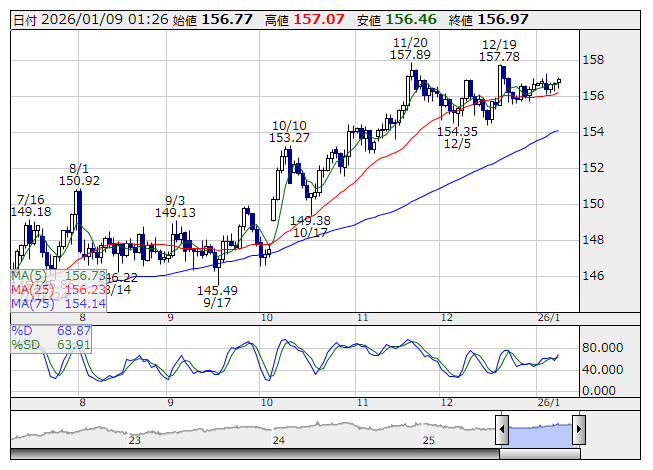 米ドル/円 <日足> Slowストキャス 「株探」多機能チャートより米12月NY連銀が発表した世論調査結果で1年インフレ期待は3.42%と、11月3.2%から上昇した。4月来で最高。3年インフレ期待は3%、5年インフレ期待は2.98%でそれぞれ11月と同水準を維持した。