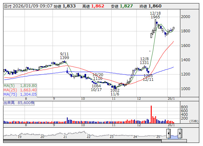 ラクスル <日足> 「株探」多機能チャートより■財務省 : 1月9日受付