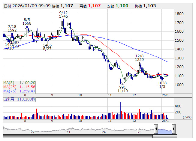 Appier <日足> 「株探」多機能チャートより■財務省 : 1月9日受付