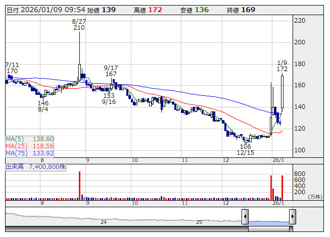 2026年01月09日09時54分 【材料】ブイキューブ---大幅反発、JR西日本が動画配信プラットフォームを採用 ブイキューブ <日足> 「株探」多機能チャートより ブイキューブ<3681>は大幅反発。JR西日本が社内向けの情報共有動画ポータル「J-Tube」に、同社の企業向け動画配信プラットフォーム「Qumu」を採用したと発表している。データの保持性、コスト優位性、高い検索性・操作性などが採用のポイントとなったもよう。JR西日本では、年に数回しか行わない重要業務の教育において、特に効果を感じているとしているようだ。大企業の採用を受け、今後の受注活動の支援になるとの期待も。 《HM》 提供:フィスコ