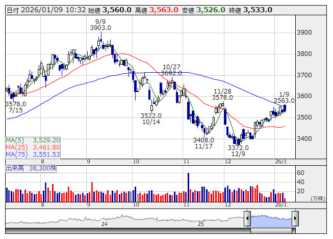 アイカ <日足> 「株探」多機能チャートより■財務省 : 1月9日受付