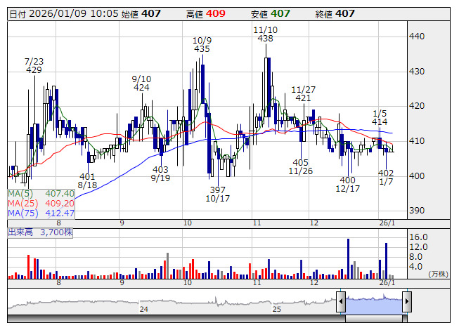 鶴弥 <日足> 「株探」多機能チャートより■財務省 : 1月9日受付
