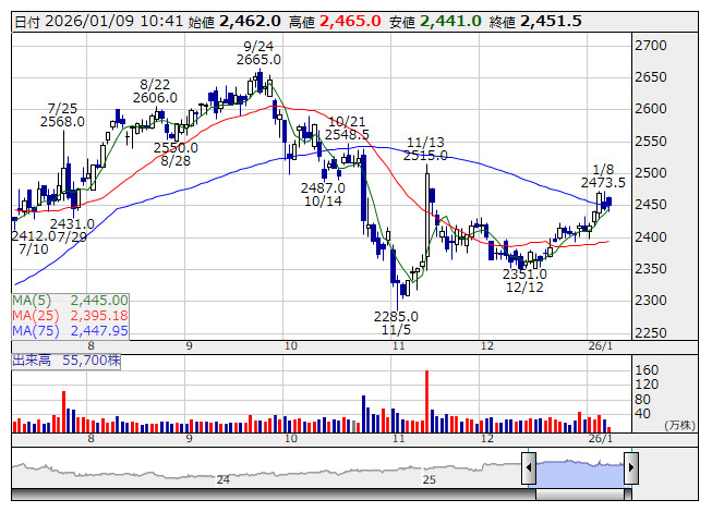 ジャフコG <日足> 「株探」多機能チャートより■財務省 : 1月9日受付